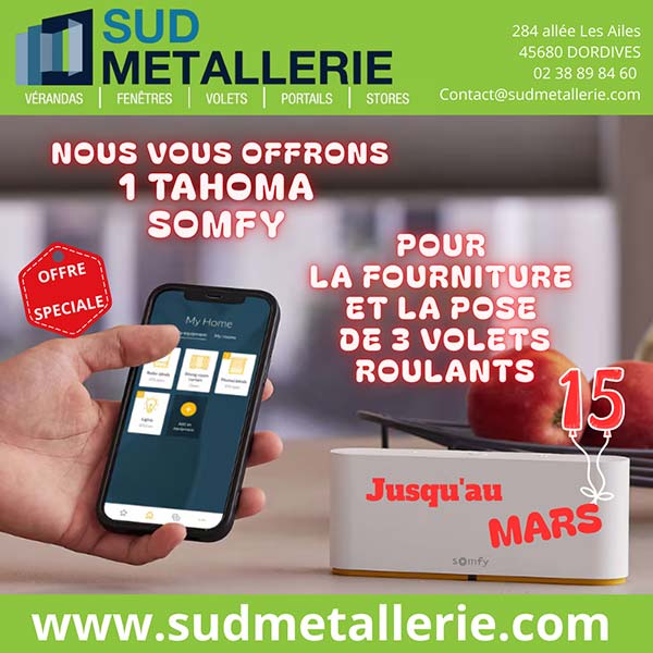 Jusqu’au 15/03/2026 : 1 TAHOMA SOMFY OFFERTE pour la fourniture & pose de 3 volets roulants